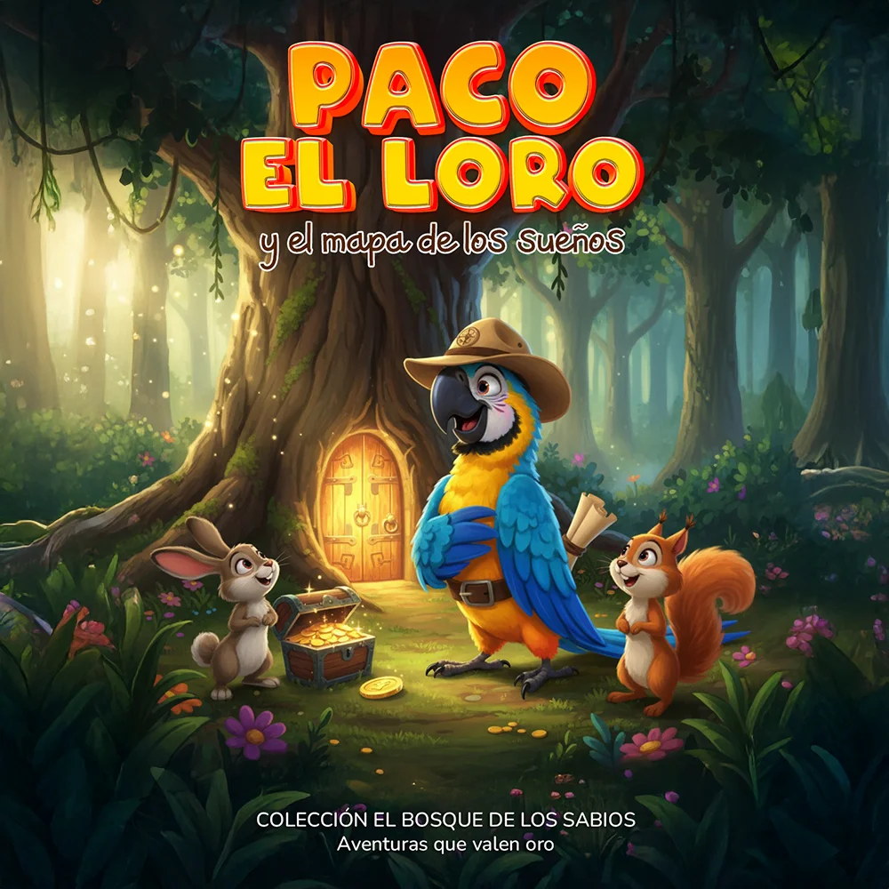 En el Bosque de los Sabios vivía Paco, un loro guacamayo lleno de imaginación y ganas de explorar. Soñaba con tener una mochila mágica para llevar sus tesoros, pero no tenía monedas suficientes. Tras buscar sin éxito, acudió a Don Búho, quien le enseñó que para alcanzar sus sueños debía planificar y guardar con paciencia. Poco a poco, Paco entendió que ahorrar con un propósito convierte lo imposible en alcanzable.