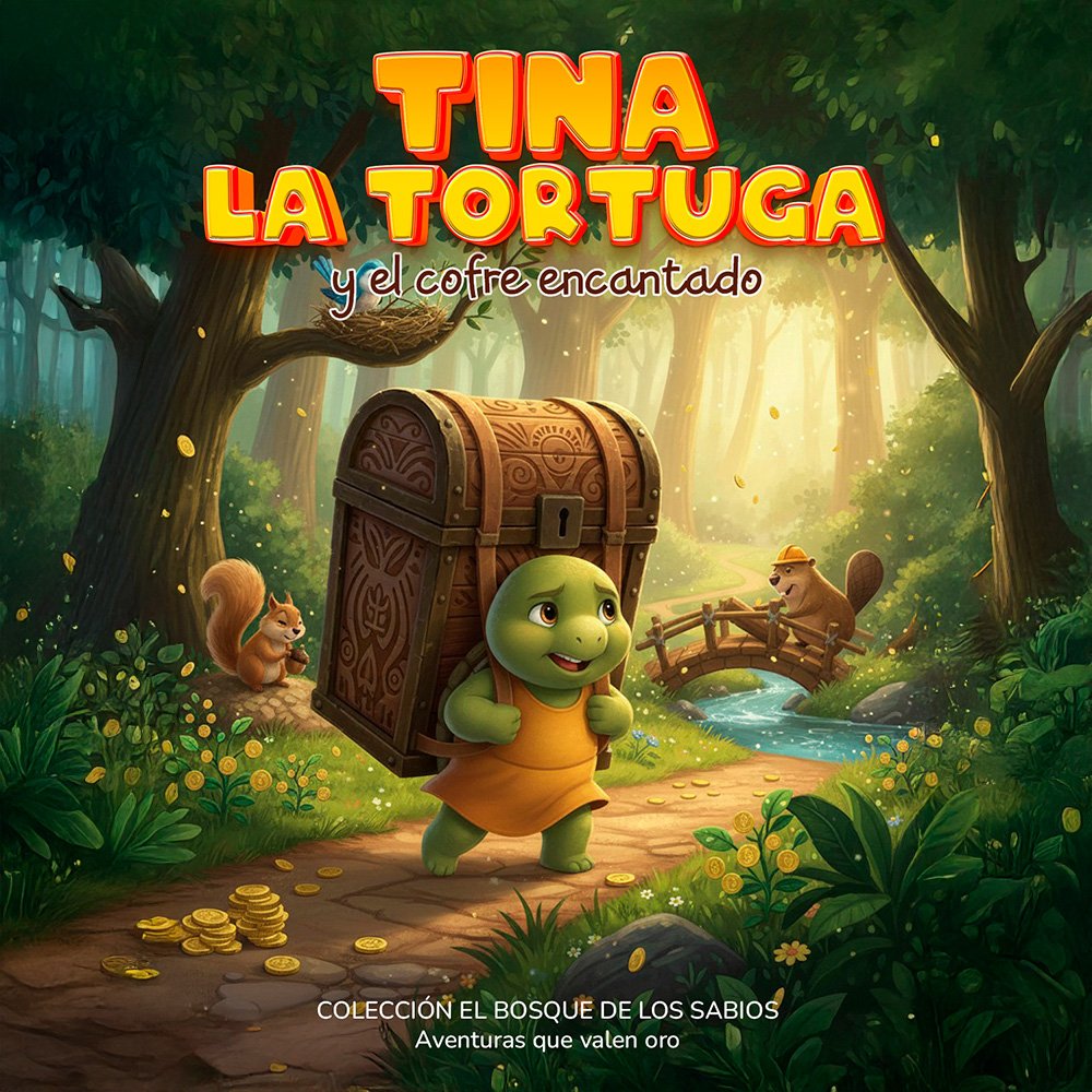 En el Bosque de los Sabios vive Tina, una tortuga tranquila y paciente. Cada día guarda sus monedas en un cofre de madera, pero pronto descubre que, por más que trabaja, el cofre no se llena tan rápido como sueña. Entonces, el sabio Gran Búho le revela un secreto mágico: si usa parte de sus monedas para sembrar semillas, su esfuerzo crecerá y dará frutos multiplicados. Con paciencia y constancia, Tina aprende que el dinero también puede trabajar para ella, igual que las semillas que se transforman en un frondoso árbol.